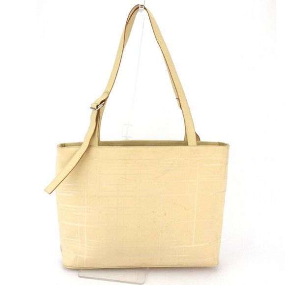 AUTHENTIC Salvatore Ferragamo tote bag check beige canvas