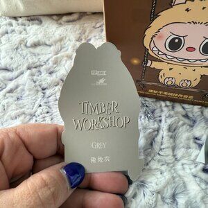 The LABUBU Timber Workshop is an exclusive, collectible plush series by POP MART, only available at the POPLAND theme park in China. They are made of soft, squishy plush fabric with the plush on a swing.