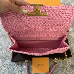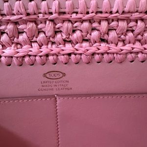 AUTHENTIC TODS RAFFIA STRAW CROCHET CLUTCH BAG PURSE LIKE NEW BARBIE PINK COLOR