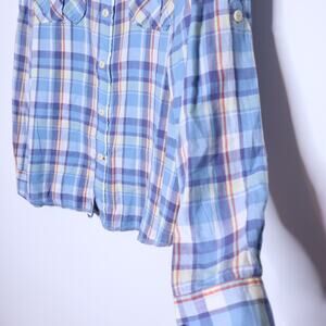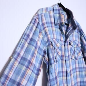 AUTHENTIC TRUE GRIT California Plaid Button Down Blue Tartan Long Sleeve Men's L