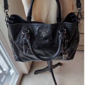 AUTHENTICATED PRADA 2WAY CALFSKIN BAG BLACK SILVER HARDWARE EUC
