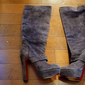 AUTHENTIC Christian Louboutin size 37 right below knee suade boots.