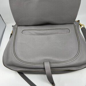 Chloé Marcie Satchel/Top/Crossbody Handle Bag Medium Gray Leather Gold Hardware