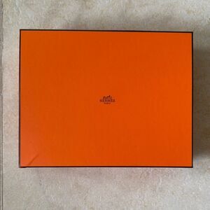 Elegant Hermès box in signature orange. Perfect for storage or gifting.
