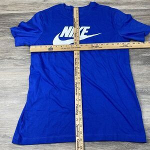This authentic Nike NSW Futura royal t-shirt is a must-have for any stylish man's wardrobe. Crafted with premium quality materials, this short-sleeved t-shirt features an embellished design that showcases the iconic Nike brand. The t-shirt is available in a size M and is designed to fit regular size types.