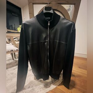AUTHENTIC mens Tom Ford Black Leather and wool Jacket size XL US and 55 (Italy)