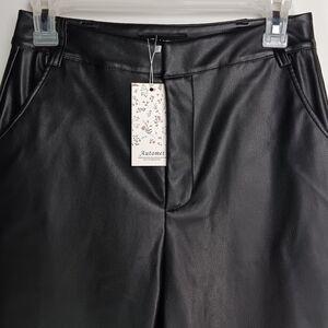 AUTOMET Black Matrix Faux Leather Wide Leg Pants Trousers Slacks Mobwife Raw Hem Size Small New With Tags