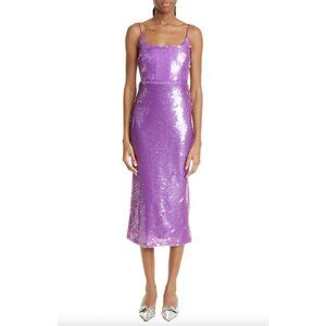 AUTUMN ADEIGBO Aster Sequin Sheath Midi Dress Purple Womens Size 8