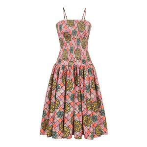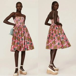 Winnie’s smocked bodice and thin straps give the illusion of a second-skin, flaring into a full skirt at the perfect midi length. Nigerian designer Autumn Adeigbo stays true to her signature bright patterns, creating a sweet, playful look that captures the excitement of summer.