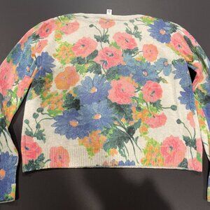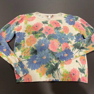 AUTUMN CASHMERE Floral Print 100% Cashmere Boat Neck Sweater Small