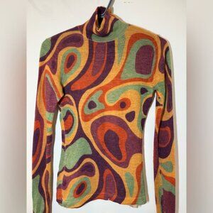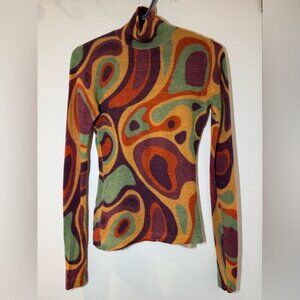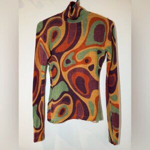 AUTUMN CASHMERE Sheer Marble Print Mock Knitted Sweater in Warm Combo size SP