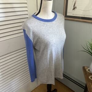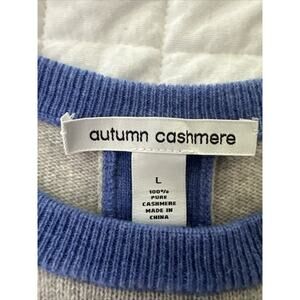 AUTUMN CASHMERE Womens Sweater Large Gray Blue Color Block Cashmere Preppy