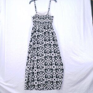 AUW Black White Floral Spaghetti Strap Maxi Dress Spanish Style Geometric L