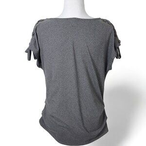 AUW Gray Ruched Waist Lace up Gourmet Shoulder Jersey T-Shirt Top (S)