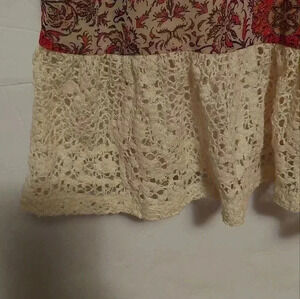 Elastic at cuffs, tie on front neck area. This dress is fully lined and has a beautiful hemmed lace detail.