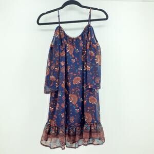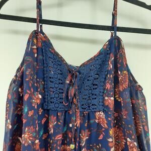 AUW Ruffled hem Floral Sheer boho Navy blue dress Size Medium