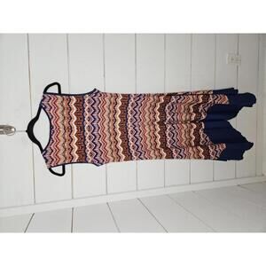 AUW size 8 orange blue & white printed midi dress with asymmetrical bottom