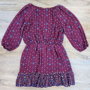 🍑AUW Burgundy Floral Estilo 3/4 Sleeve Dress XLarge