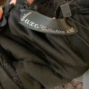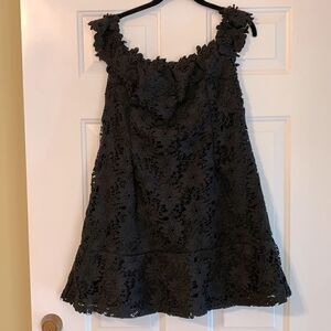 This dress seems to run small. Please see all photos before purchase. Fully lace over black lining. No with tags and smoke free/pet free home. Can be worn off the shoulders
