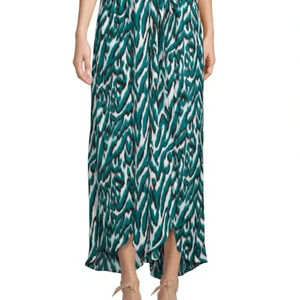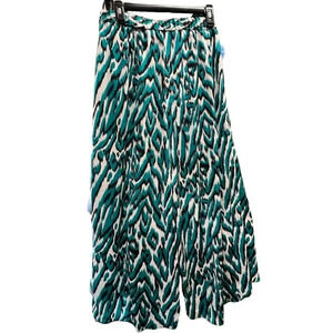 AVA & AIDEN Self-Tie Pants Size Small Teal Zebra Ikat Slit Hem Flare Leg New