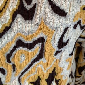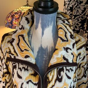 AVA Designs Women's M yellow brown cream abstract knit zip up jacket