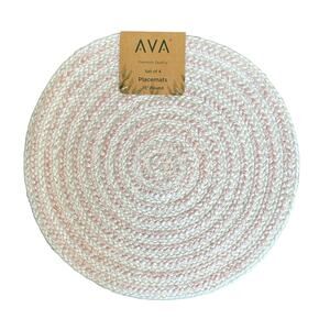 AVA Pink and White Premium Quality Set of 4 Braided 15" Round Placemats NEW
