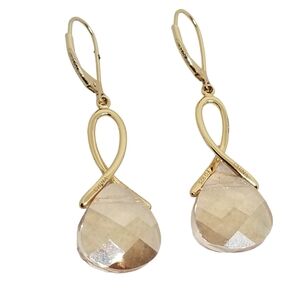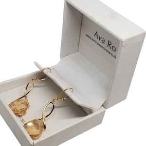 Beautiful earrings by Ava Ro are gold vermeil (gold over sterling silver) with large faceted champagne colored swarovski crystals. Earrings have a drop style design and latch hook style backs. Earrings are new and come in original box. Earrings measure 2 inches tall and 1/2 inch wide and are stamped 925 FD China in a couple of different areas of earrings as seen in pics