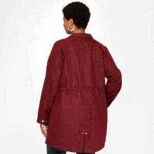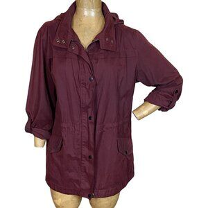 AVA VIV Burgundy Zip/Button Anorak Utility Jacket Hooded Plus Sz 1X #349G