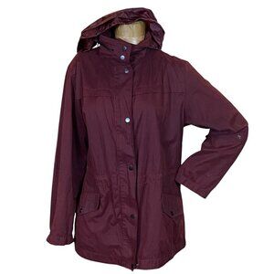 Description: AVA VIV Burgundy Zip/Button Anorak Utility Jacket Hooded