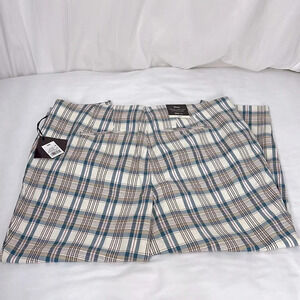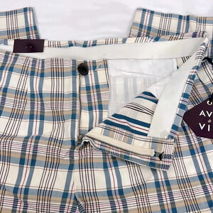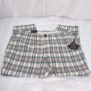 AVA & VIV Cream Plaid High Rise Comfort Waist Fitted Hip & Thigh Skinny Pant