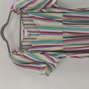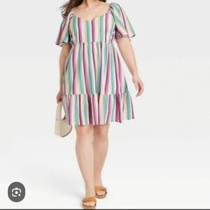AVA & VIV Multicolor Stripe Tiered Dress Size 1X Big Sleeves With Side Pockets