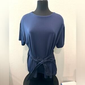 Tags navy knit top, plus size shirt, tie waist blouse, casual short sleeve, Target brand top, minimalist top, modern casual blouse, business casual