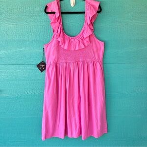 AVA & VIV PINK LINEN RUFFLE EMPIRE WAIST SLEEVELESS MIDI DRESS SIZE 2X PLUS