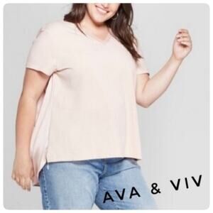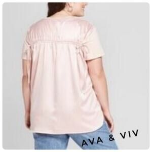 AVA & VIV Soft Pink Knit Stretch Satin Top Blouse Plus Size 2X Feminine Flowy