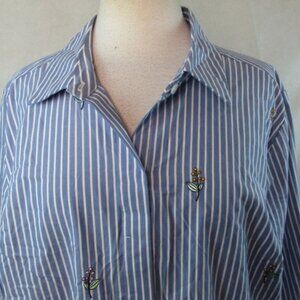 AVA VIV WOMENS PLUS SZ BUTTON DOWN SHIRT TOP STRIPED FLORAL EMBROIDERED-2x