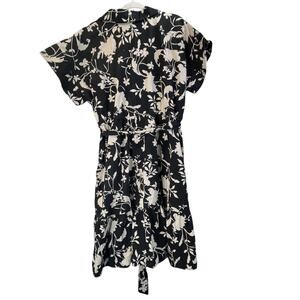 AVA & VIV Womens 2X Black White Print Floral Pockets V Neck Button Down Dress