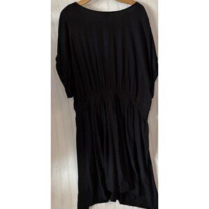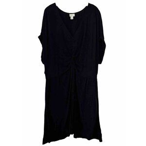AVA & VIV Womens 3X Twist Front Shirt Roll Cuff Sleeve V-Neck Black Rayon Dress