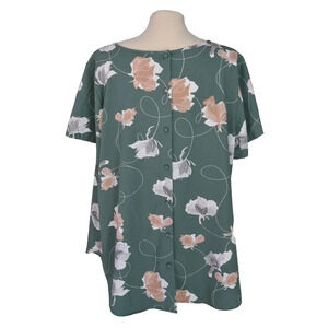 AVA & VIV || Women's Flowy Floral Blouse Peach Sea Glass Green 1X