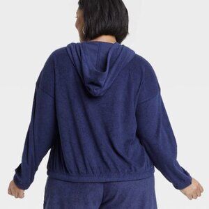 AVA & VIV navy French terry pullover hoodie 1X, 4X, NWT