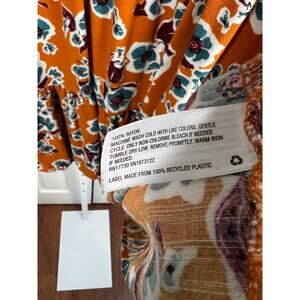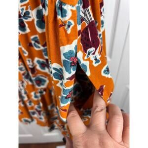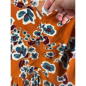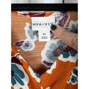 AVA & VIV orange blue floral short sleeve tiered knee length midi dress 2X Rayon