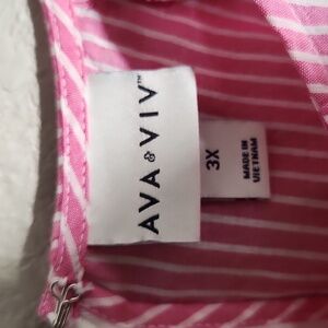 AVA & Viv womens blouse top size 3x pink balloon tie sleeves pink white