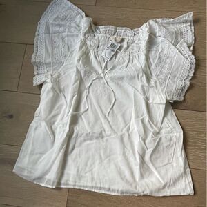 DESCRIPTION : Short-sleeved blouse, v-neck, embroidered details, gather details.