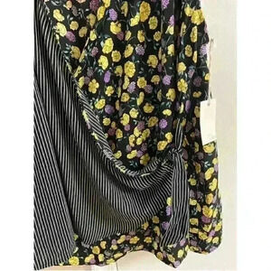 AVA JAMES multimedia floral/striped faux wrap top Sz 3X NWT