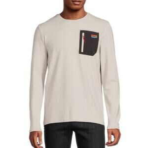 AVALANCHE Large Tan Cream Zip Pocket Tee Pullover Crewneck Knit