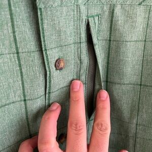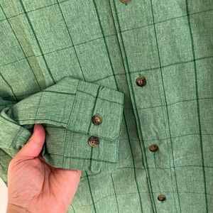 Avalanche Man Green Full Button Down Shirt with Zip Pocket, Size Small