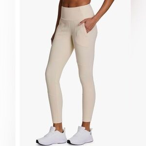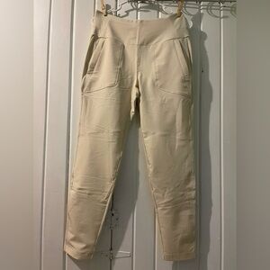 Like new with no signs of wear. Size large AVALANCHE leggings in a cream color. 2 zippered pockets in front and 2 pockets in back. Flat waist 14 1/2” front rise 10 1/2” and inseam 28”. Tote 14.