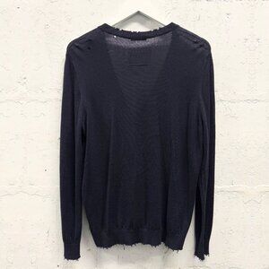 AVANT TOI Dark Navy Merino Wool Distressed Cardigan