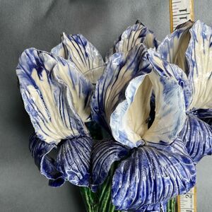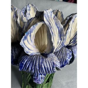 This AVATAR Pottery Sculpted Ceramic Vase Majolica Garden Purple Iris Signed Hand Made in great condition.Can’t see any flaws.Also I have matching clear glass vase.