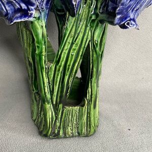 AVATAR Pottery Sculpted Ceramic Vase Majolica Garden Purple Iris Signed HandMade