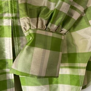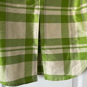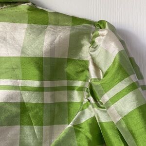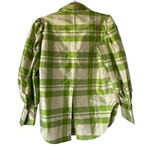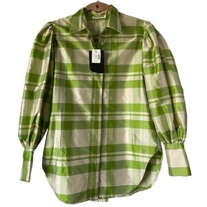AVAVAV Silk Puff Sleeve Check Button Front Shirt Green Cream Size XS NWT!